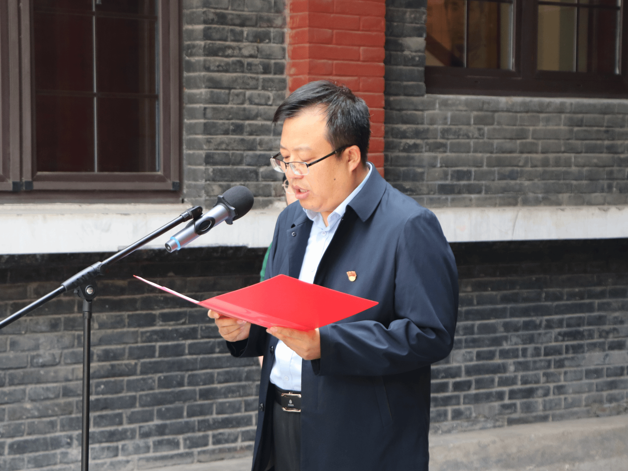 校馆共建爱国主义教育基地揭牌仪式上,党委书记赵德明发表主旨讲话,强调深挖山西红色资源育人价值,以“三个着力”构建思政教育新体系:一是以史铸魂,依托平型关大捷、百团大战等红色资源,从太行精神中淬炼信仰力量;二是以文化人,创新“实地参观+主题研讨+情景教学”三维模式,将抗战精神融入课程思政;三是深化校馆共建,开发红色研学课程,打造“大思政课”实践品牌。他号召师生将爱国情怀转化为服务科技创新、乡村振兴的实干担当,让“打不垮的运输线”精神在智慧物流领域焕发新生。