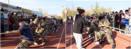 哨声一响,赛场瞬间沸腾!我院健儿们双脚稳稳扎根地面,身体后倾成坚定的防线,紧握绳索的双手青筋微鼓,眼神里满是不服输的倔强。“一二!一二!”整齐划一的口号震彻东操场,每一次发力都凝聚着团队的同心协力,每一次僵持都彰显着不放弃的韧劲。